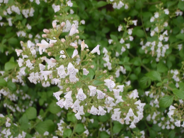 手稲山側の花壇で、カラミンサ・ネペタが白い花をつけてゆらゆら