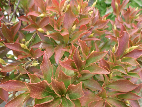 ドウダンツツジの葉が赤くなり始めている部分があり