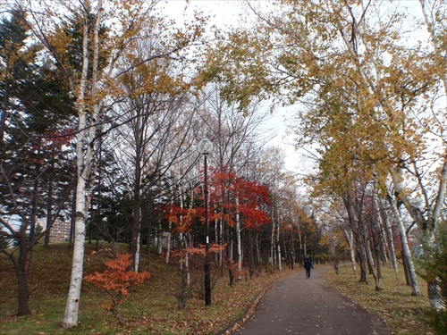先月まで紅葉が綺麗だった星置公園は、色づいた葉がだいぶ落ちていていました。