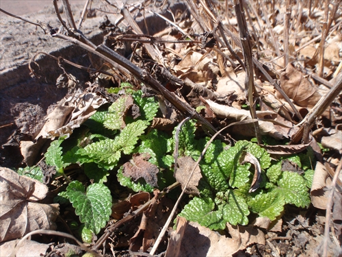 根本をよくよくみると、レモンバームの新しい葉が顔をだしていました。