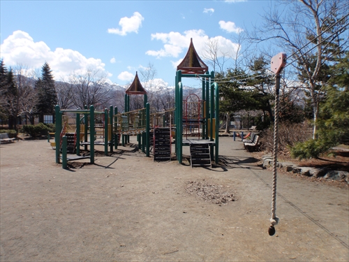 降雪前に冬じまいをしていた遊具がふたたび取り付けられ、遊べるようになっています星置公園。