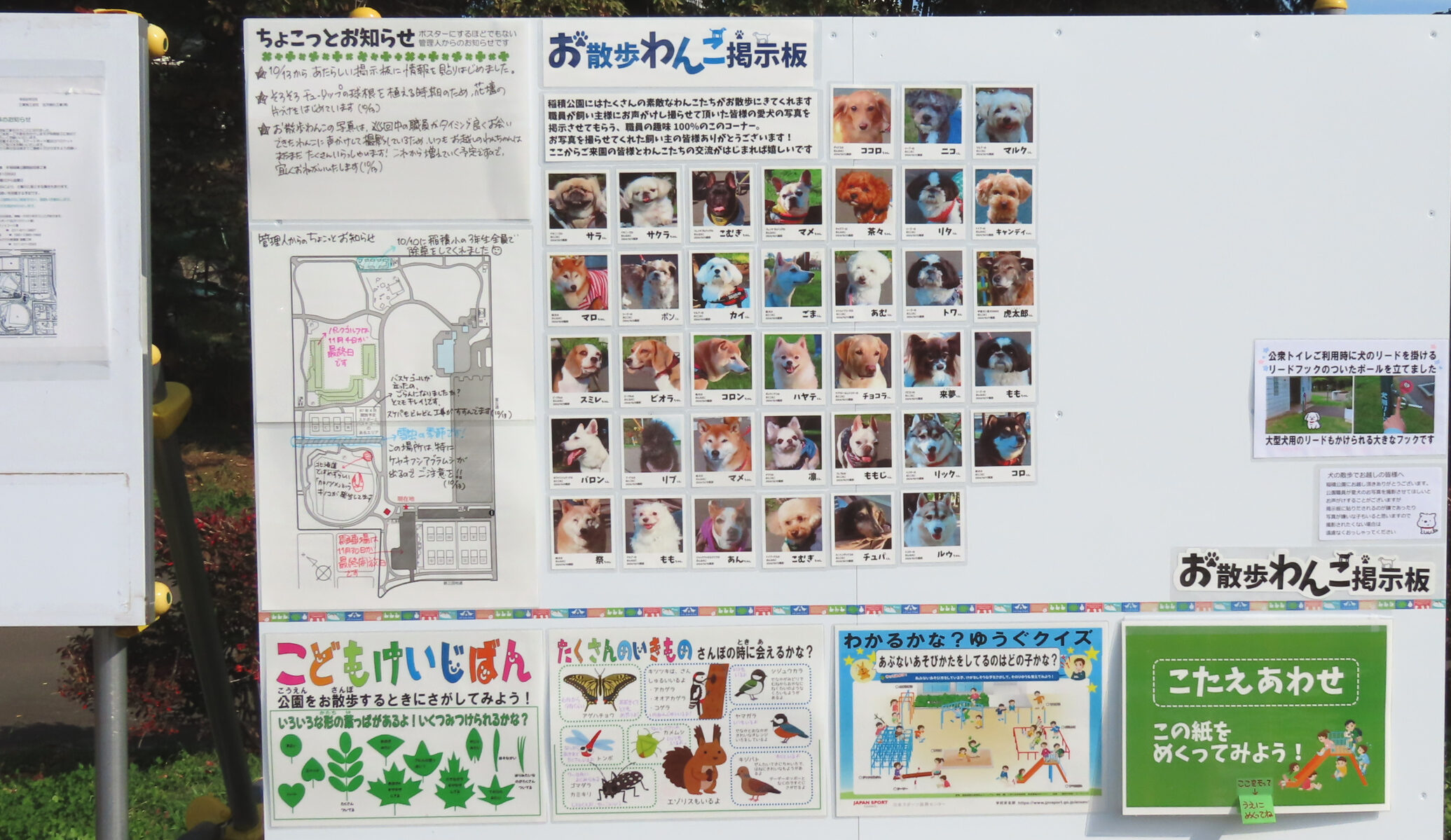 10月13日から掲示を始めましたが、お散歩わんこ掲示板は