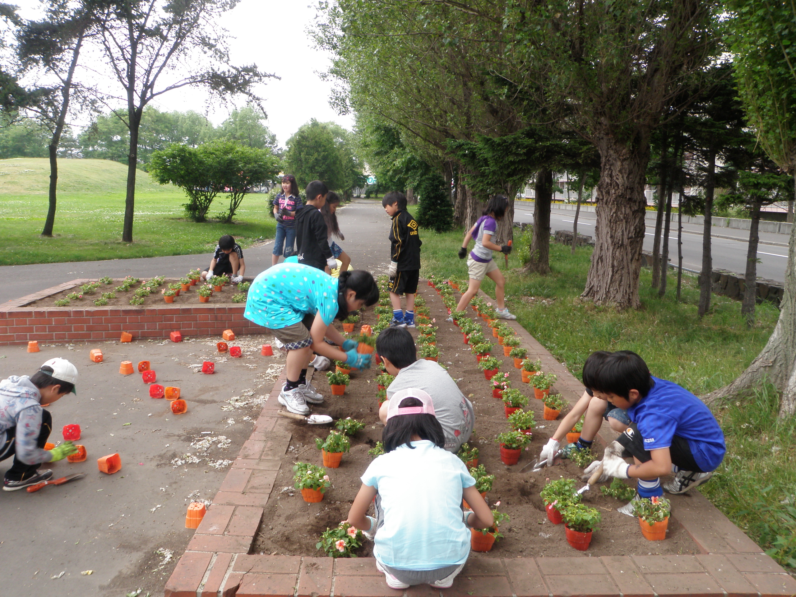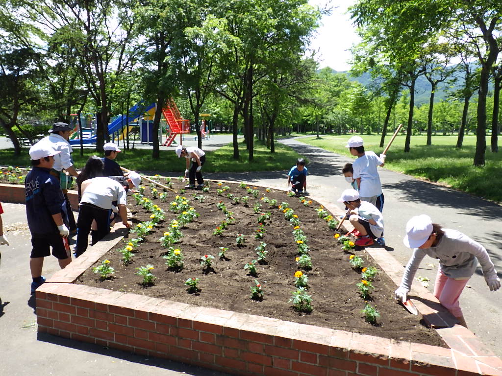 今年6月、園内の花壇に社会学習で花植えをしてくださった稲積小学校三年生のみなさんから、