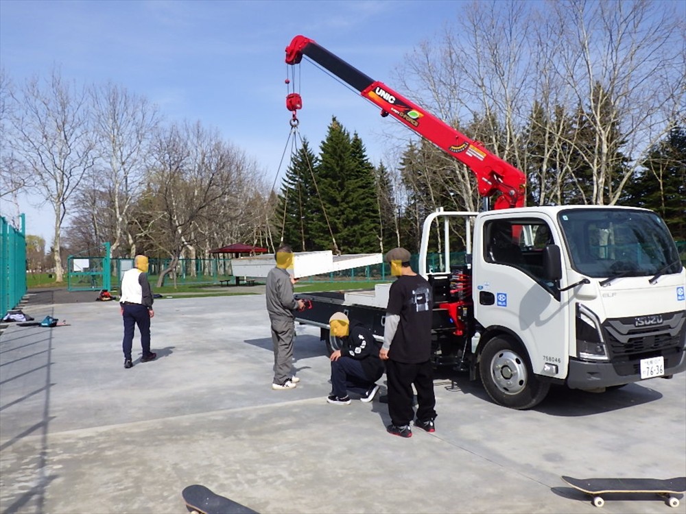 ようやく晴れた今日、移動式のセクションを設置しました。