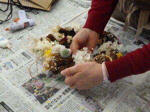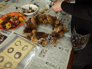 今年度は全体的に木の実のシンプルなリースを作る方も多かったですね。