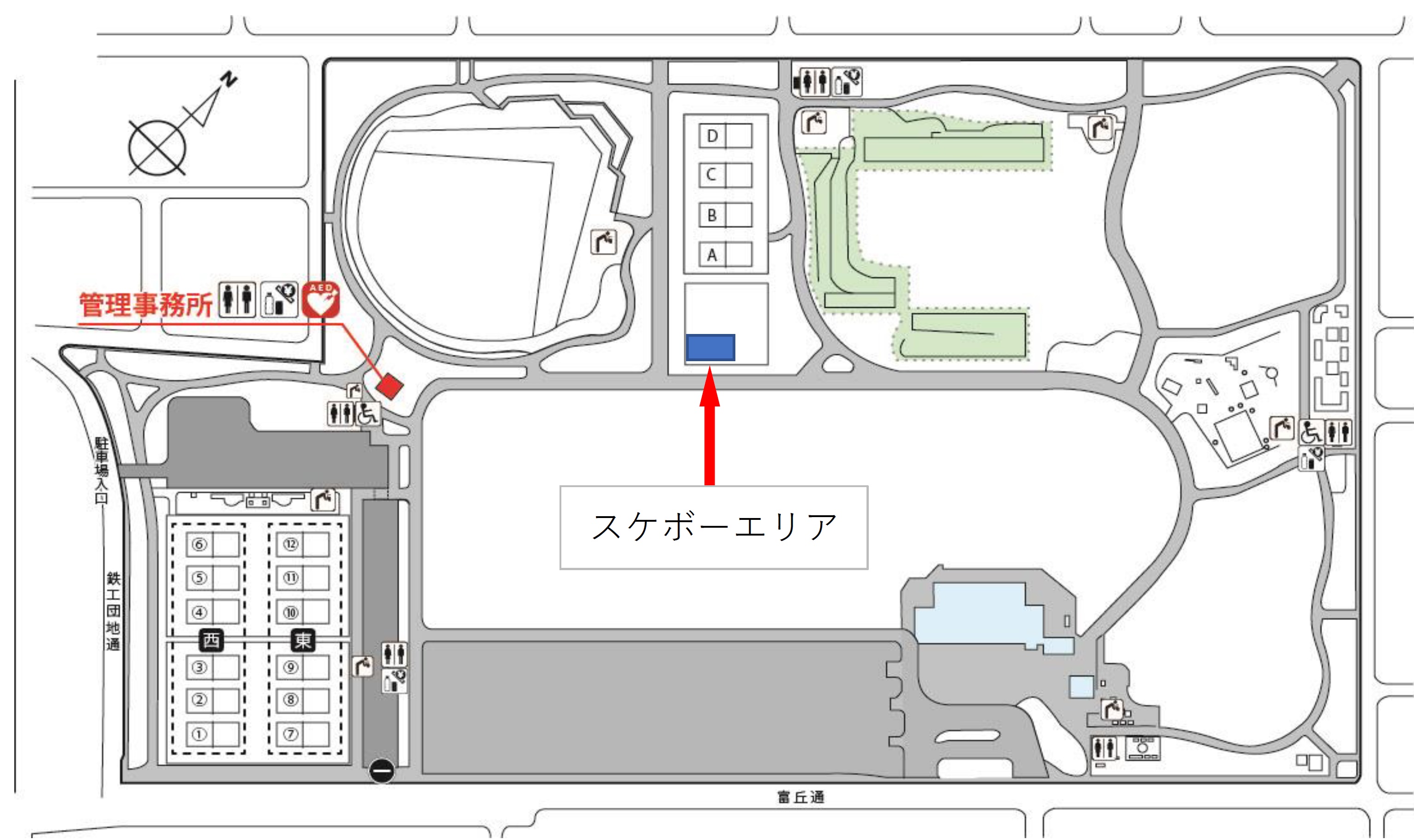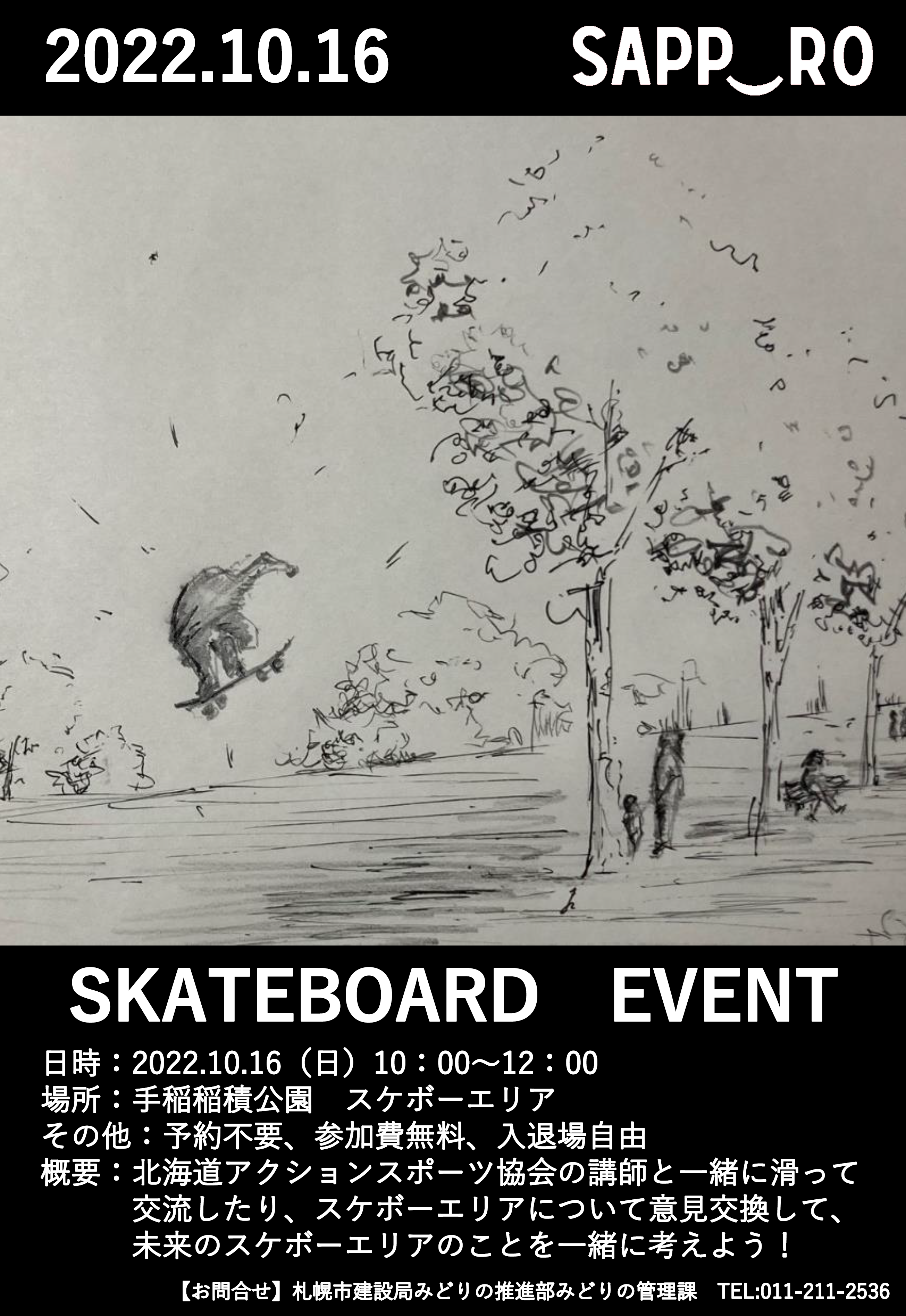 令和4年8月1日より10月31日まで、手稲稲積公園内に「スケボーエリア」が試験的に開放されます。