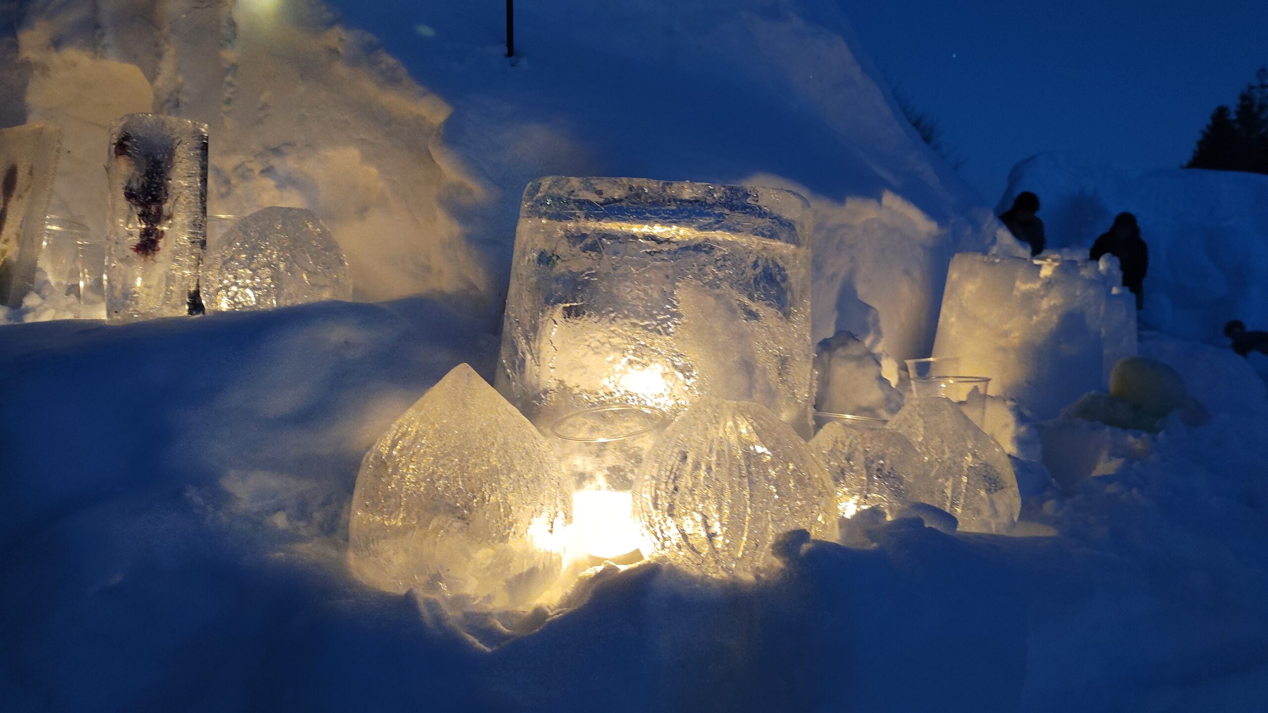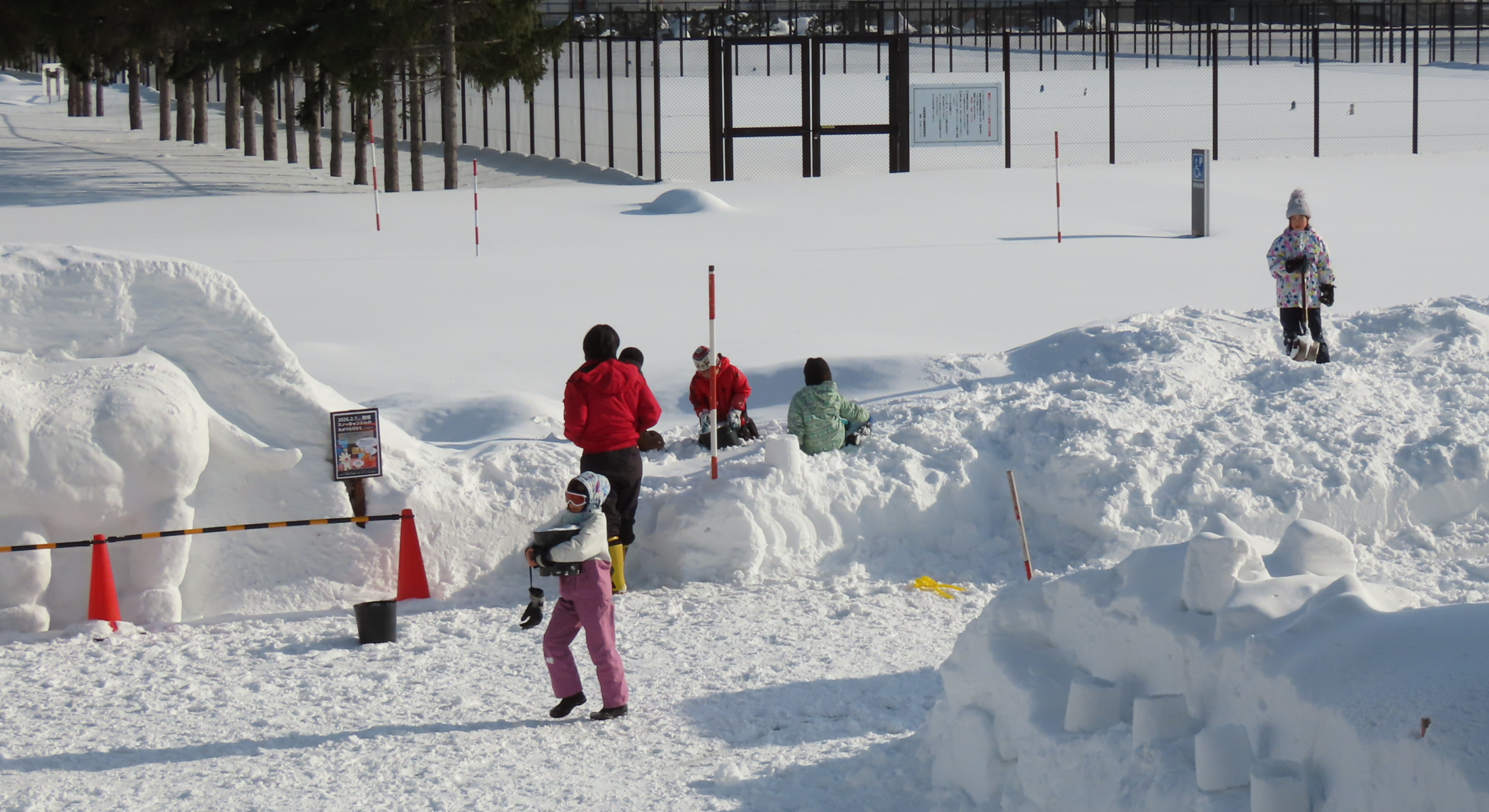 午後からのスノーキャンドルの準備で屋外で作業中、