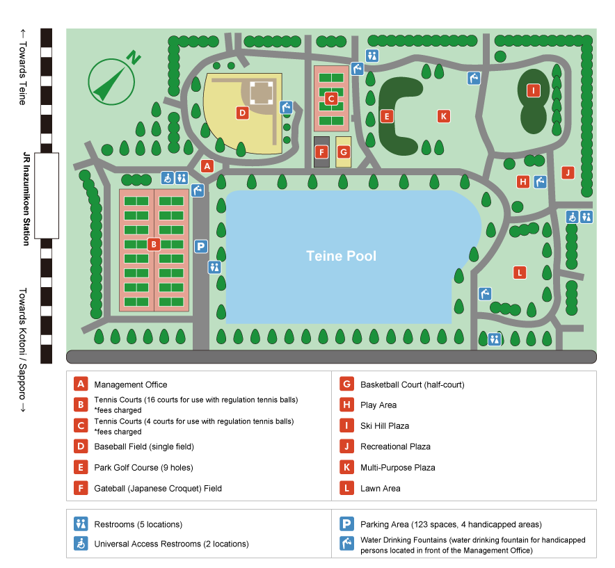 This park offers recreational facilities such as the Teine Pool and the Tennis Courts, where visitors can play sports while enjoying the magnificent views of the Mt. Teine landscape.