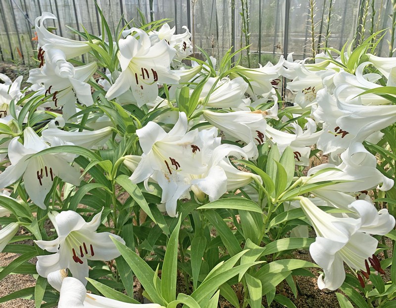 このユリは、白老町の故土屋淳二氏が継代してきたユリを祖先に持つ実生です。今年、初夏を迎えたユリが多く、鱗茎の直径は2.5-3cmほどです。