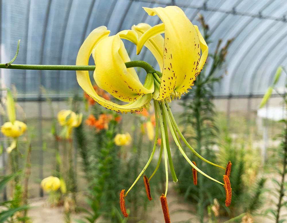 平野部では、戸外で越冬できます。新鮮で水はけよい土壌の日当たりを好みます。ユリ属の中で最も強健なユリのひとつです。札幌では、8月に開花します。