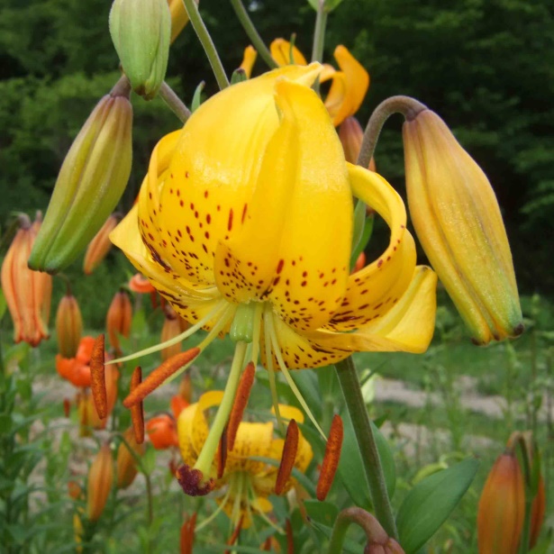 道内平野部では、越冬できます。新鮮で水はけよい土壌の日当たりを好みます。丈夫なユリです。濃黄色の手鞠形の花が、7月中旬に咲きます。