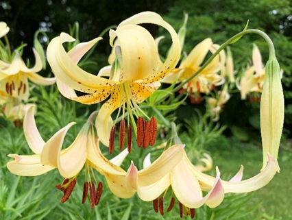 札幌近郊では越冬します。新鮮で水はけよい土壌の日当たりを好みます。鱗茎は塊茎状で鱗片がはがれやすいので鱗茎の移植には注意が必要です。上根が発達しないので、約5cm覆土する程度に植え、深さの調整はユリに任せます。夏に暑がるので刈草、落ち葉などで地温の上昇を抑えます。アブラムシの防除に努めます。札幌での開花は7月中旬です。