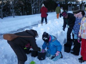 雪不足のため規模を縮小しようかと話していたのですが、直前になって降ってくれたおかげで綺麗な雪で作ることが出来ました!
