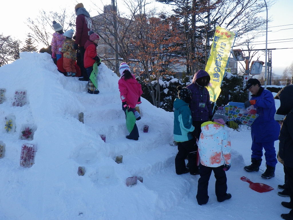 1月25日に、冬季閉園中の平岡樹芸センターを1日だけ臨時開園してスノーキャンドルを作る「まちに灯りをinみどりーむ」を開催いたしました。