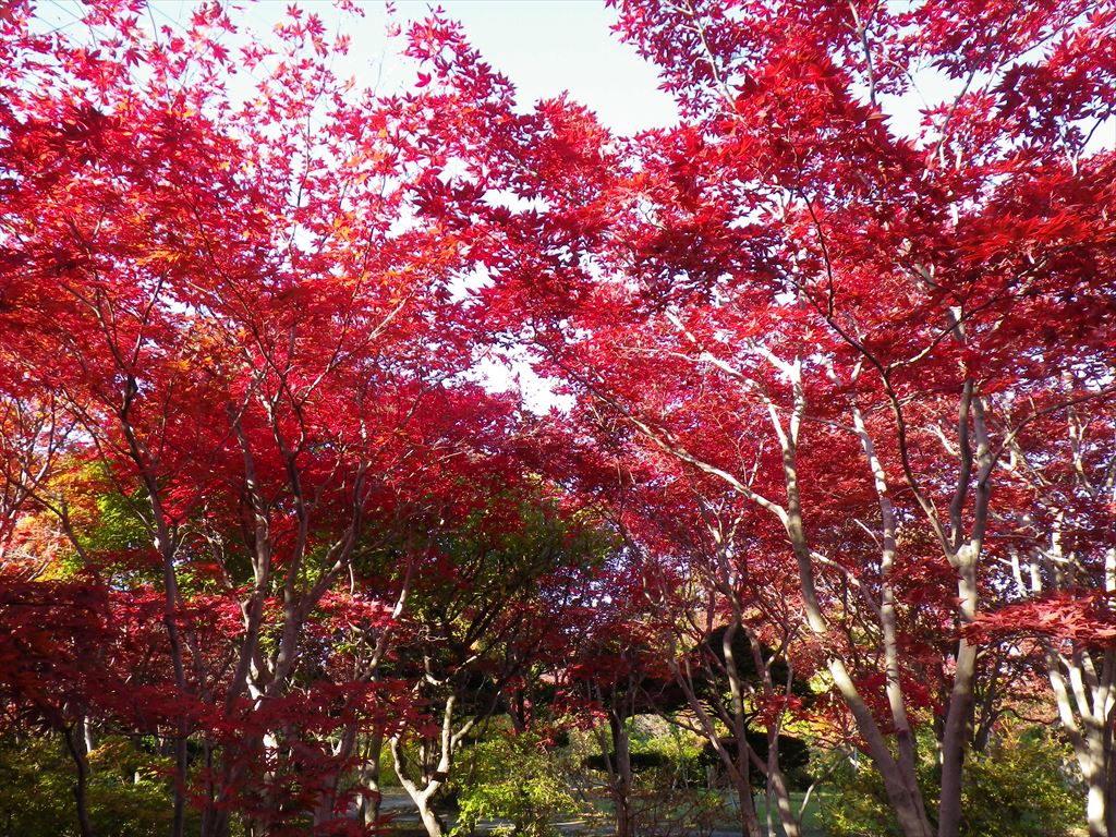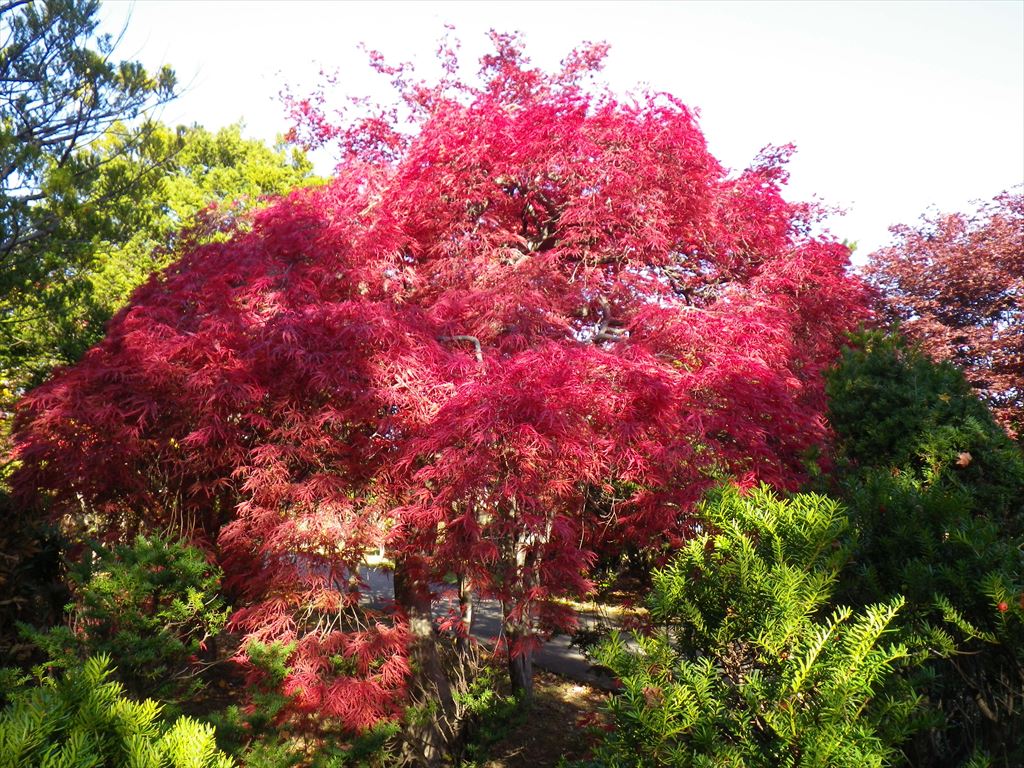 ノムラモミジが大変綺麗に紅葉し、園内を赤に彩ります。