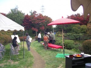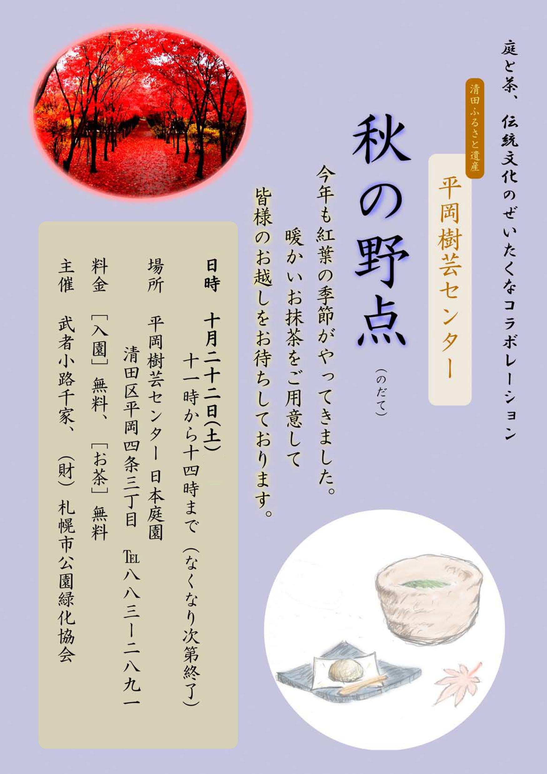 平岡樹芸センター内日本庭園で秋の野点を行います。