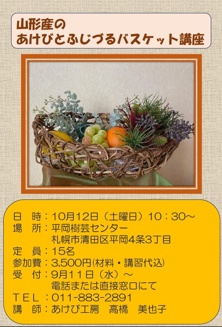 10月12日に「山形産のあけびとふじつるのバスケット」を開催いたします。