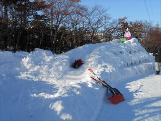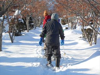 みんなはじめてのかんじきも喜んでくれたようです。雪のなか、モミジのトンネルをくぐれるのはこのときだけ!