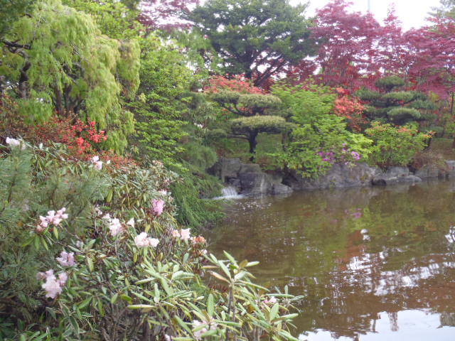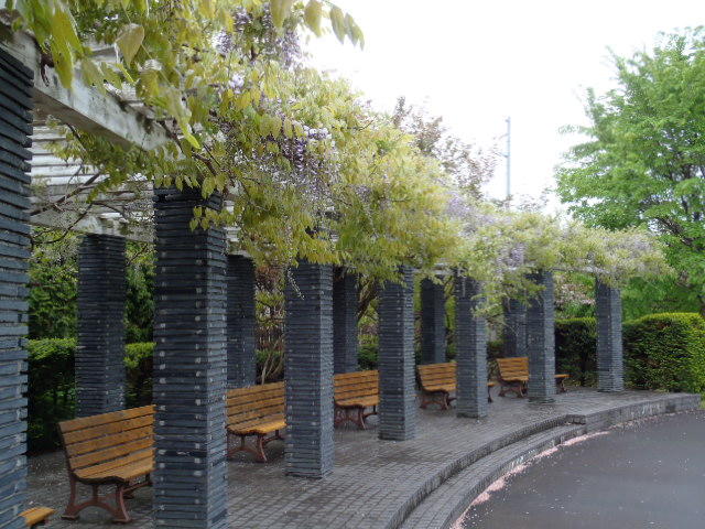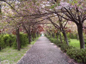 平岡樹芸センターでは、先週に見頃だった八重桜が散り始め、桜の花びらの絨毯が出来ています。