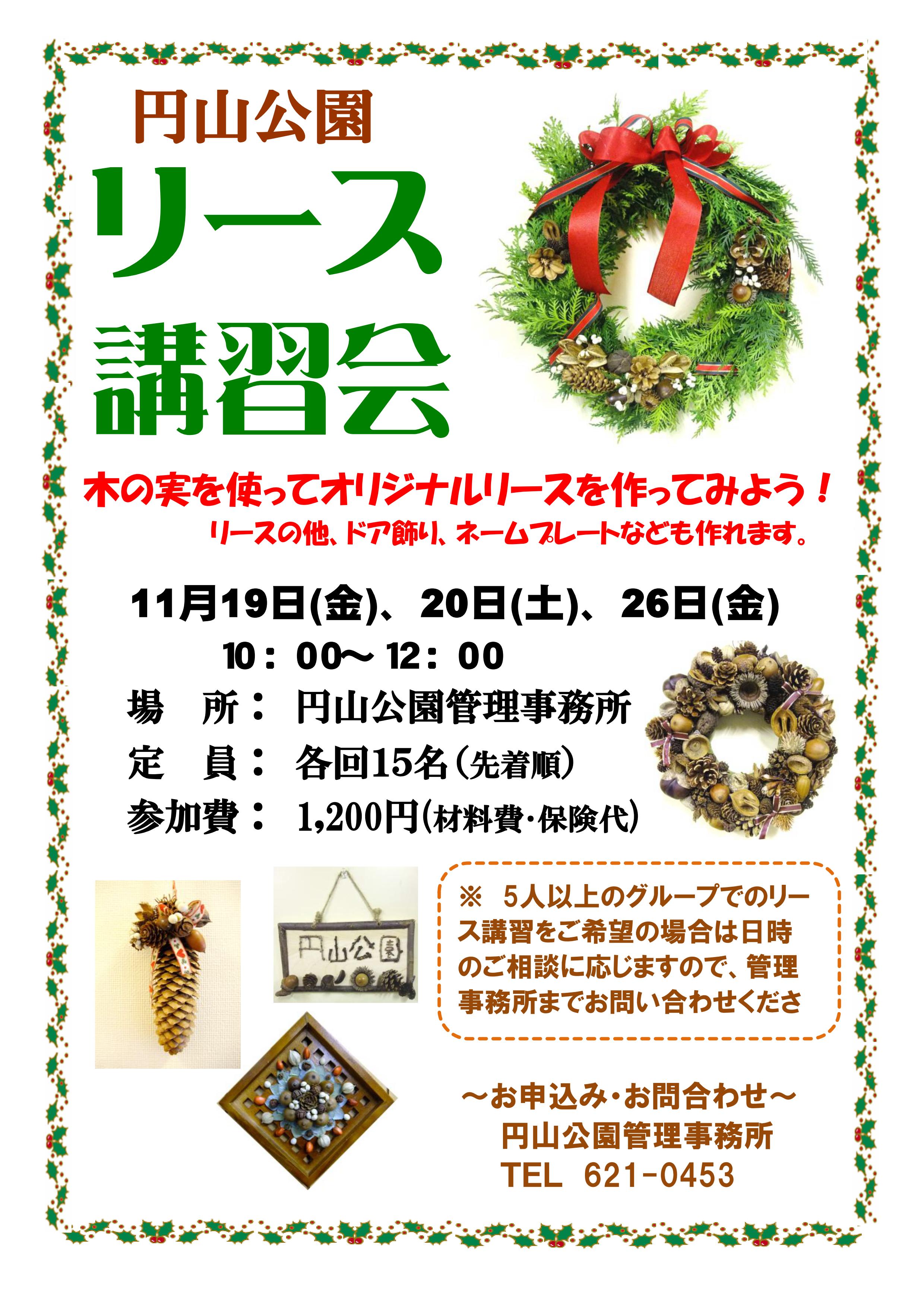 円山公園ではクリスマスリースの講習会を予定しております。