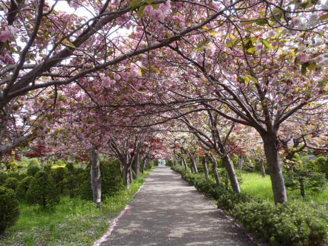 今、平岡樹芸センターでは桜並木を始め、八重桜が満開です。