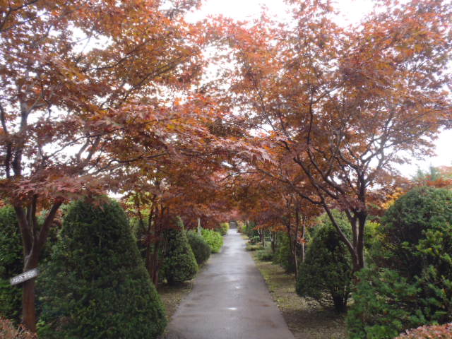 ↑ノムラカエデの並木。ずいぶん色に変化が出てきました。