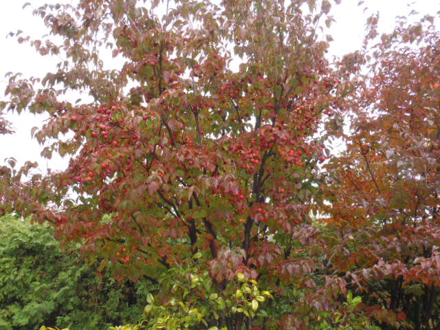 左の木は緑から赤へと変化している途中で花が咲いたように色とりどり。