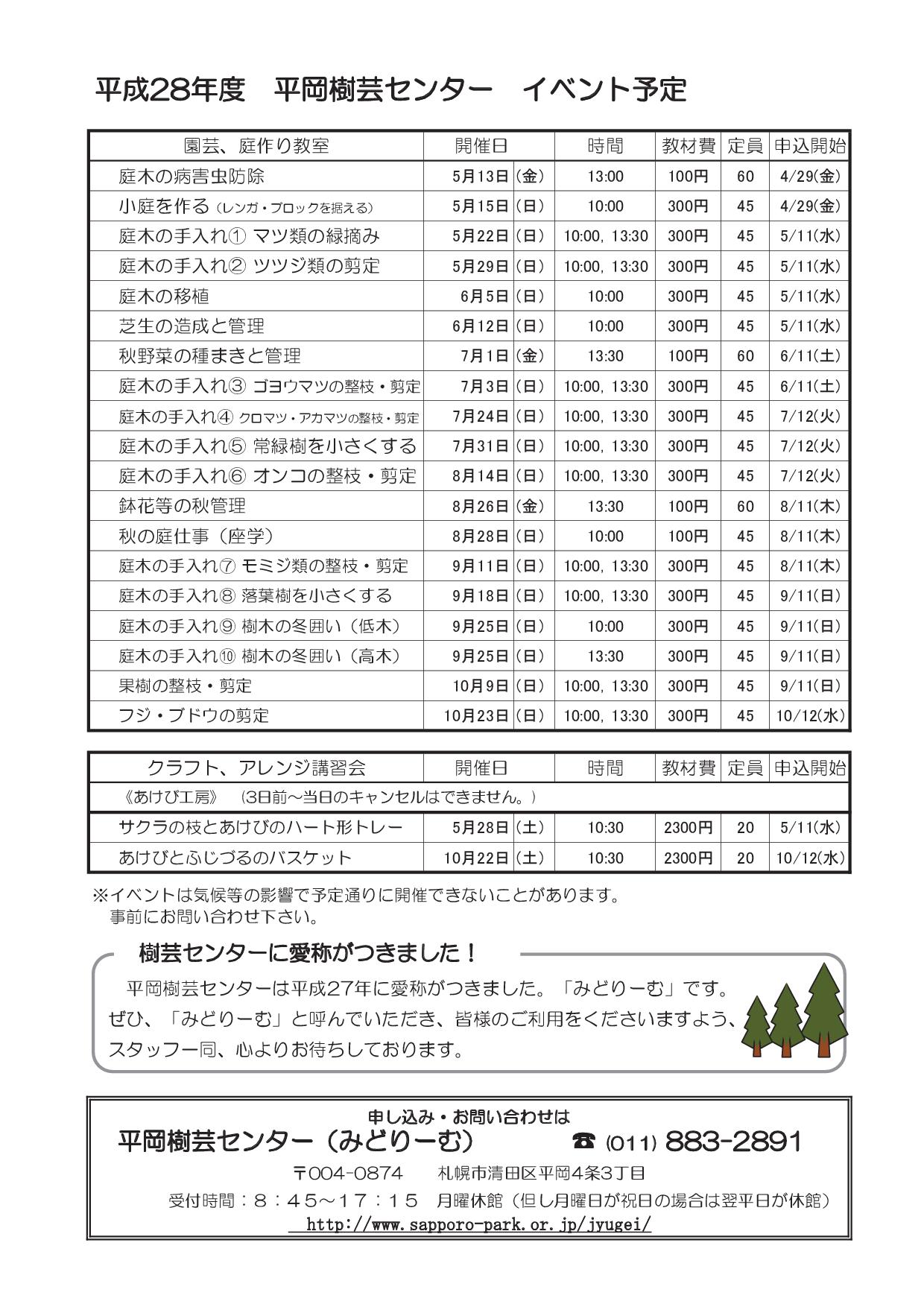 また、今年度の平岡樹芸センターイベント予定表ができました。(クリックで拡大)