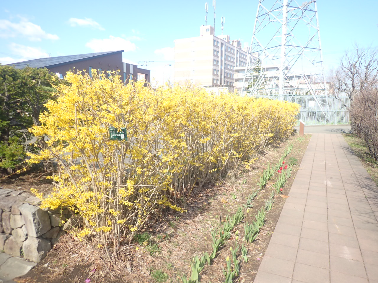 また園内では、エゾムラサキツツジやレンギョウが開花しています。