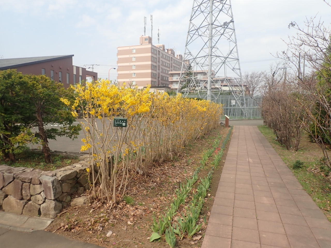 また園内では、エゾムラサキツツジやレンギョウ、トサミズキが開花しています。