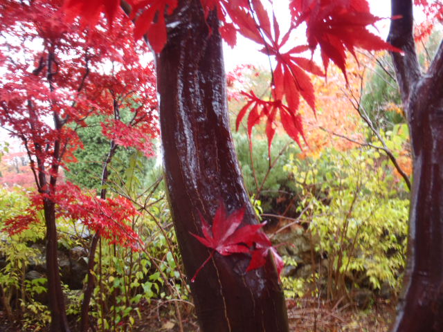 散りゆく葉とそのほかの植物たちが、何かを話しているように感じます。