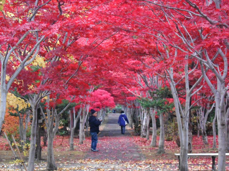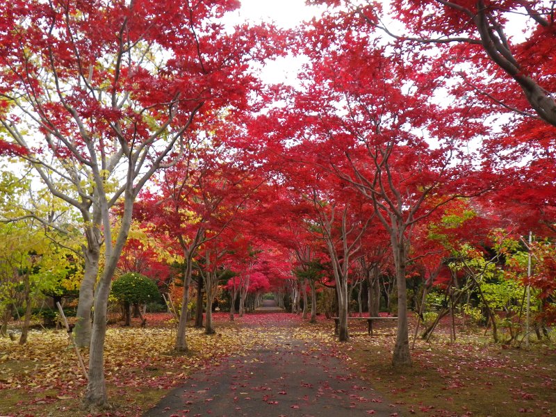 平岡樹芸センターは今週日曜日、11月6日まで開園しています。ノムラモミジのトンネルは、一部落葉し始めているところがあり、上も下も赤くなると、非常に見応えがあります。