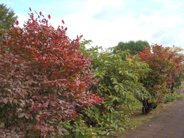 モミジやサクラなども日当たりのいい所は色づき始めました。