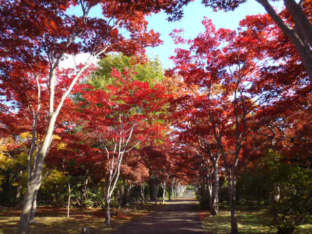 ノムラモミジの並木はほとんど落葉していません。