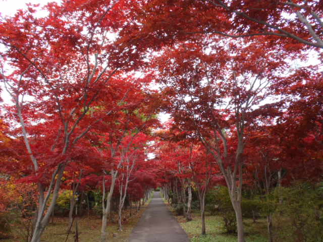 モミジ並木は、落ち葉で園路が紅くなる程では有りませんが、今年は今週が見ごろとなります。すでに、落葉した樹もあります。