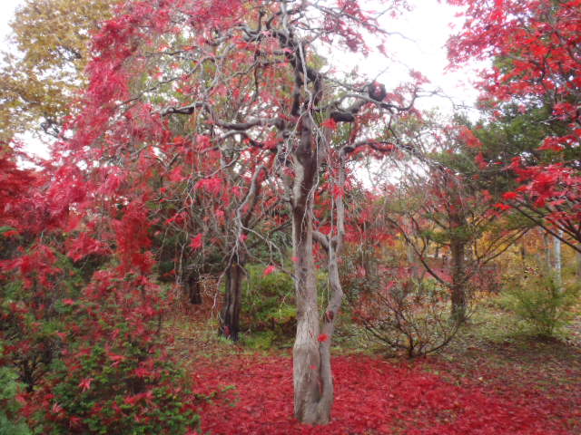 ベニシダレの落ち葉に覆われ紅く染まる様子