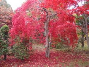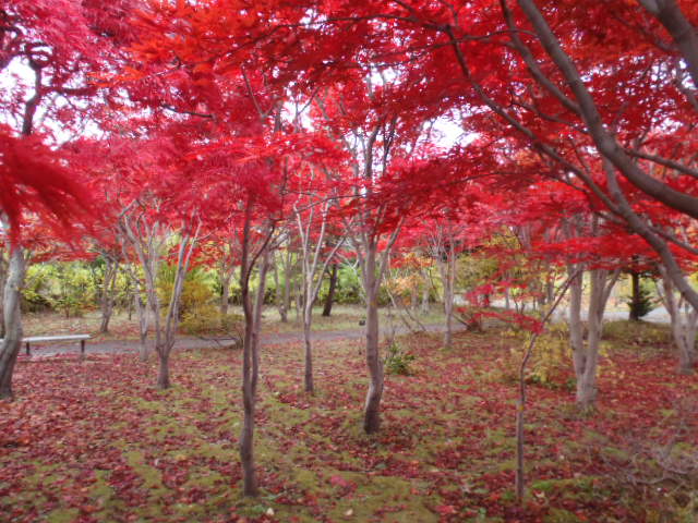 モミジが紅葉し、そして落葉も多くなって来ました。まるで赤い絨毯のようです。