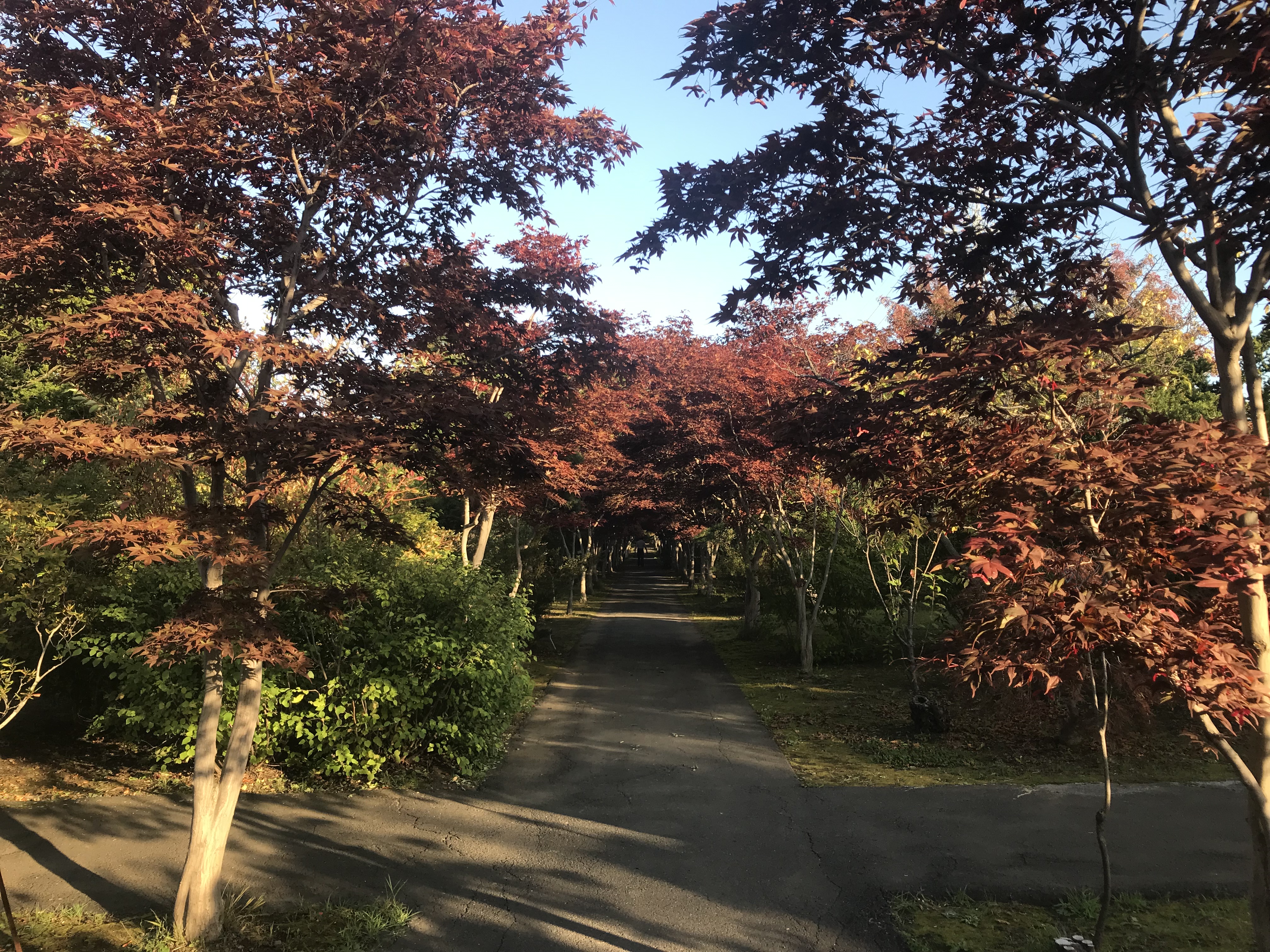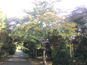 樹木によっては一部紅葉が始まっていますが、メインのノムラモミジの並木道はもう少し先でしょう。