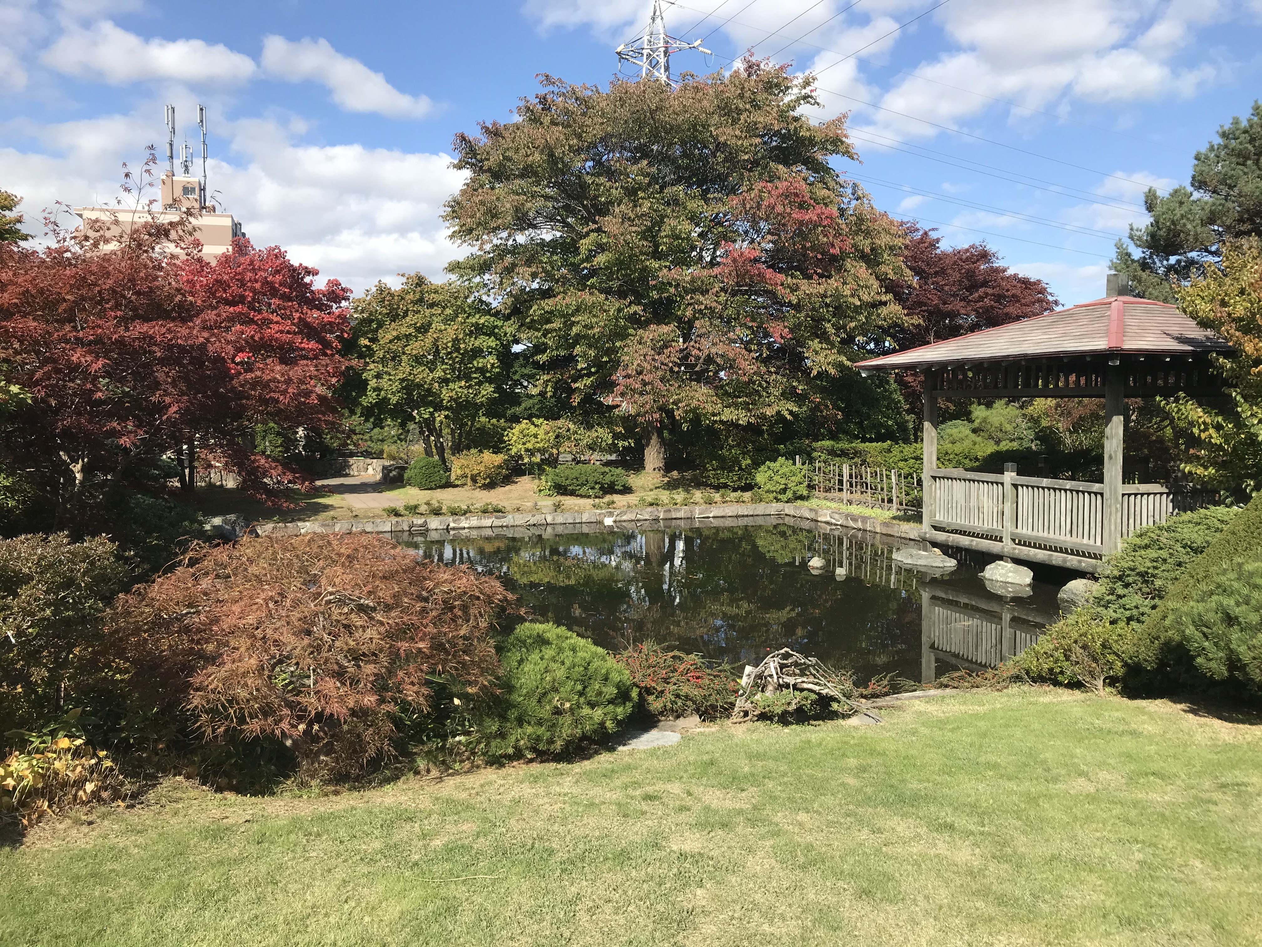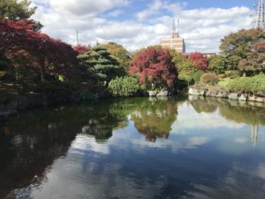 日本庭園の周りも紅葉が進み、所々赤みが増しています。
