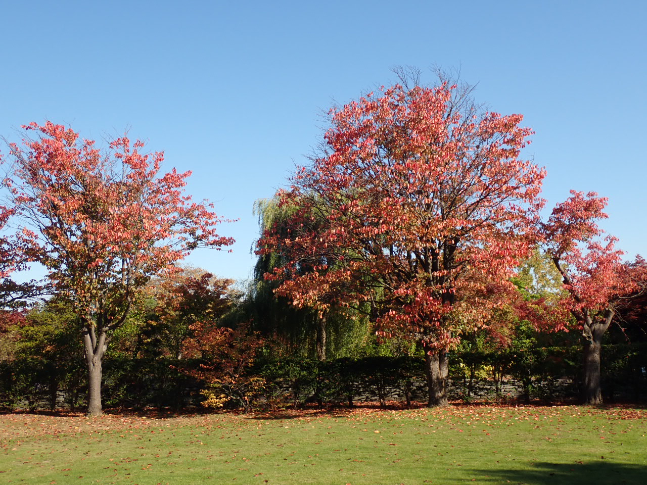 一方で、紅葉並木のノムラモミジはまだ紅葉していないようですので、