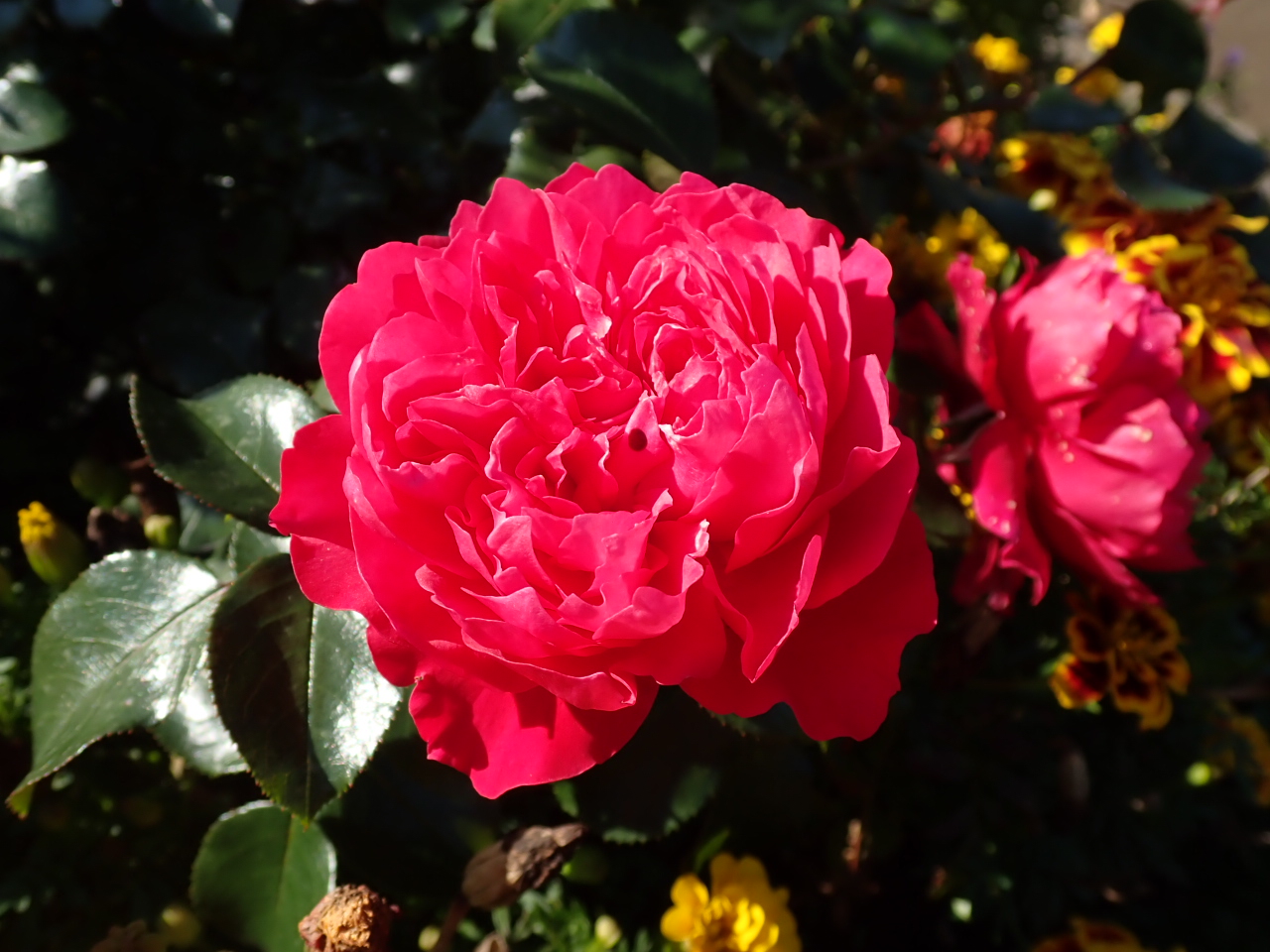 西洋庭園にある円形花壇ではまだ少しバラが咲いています。