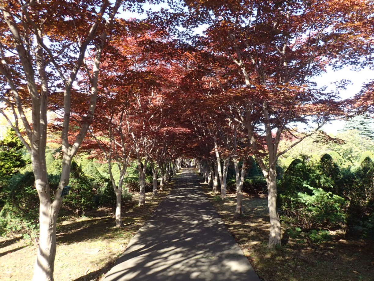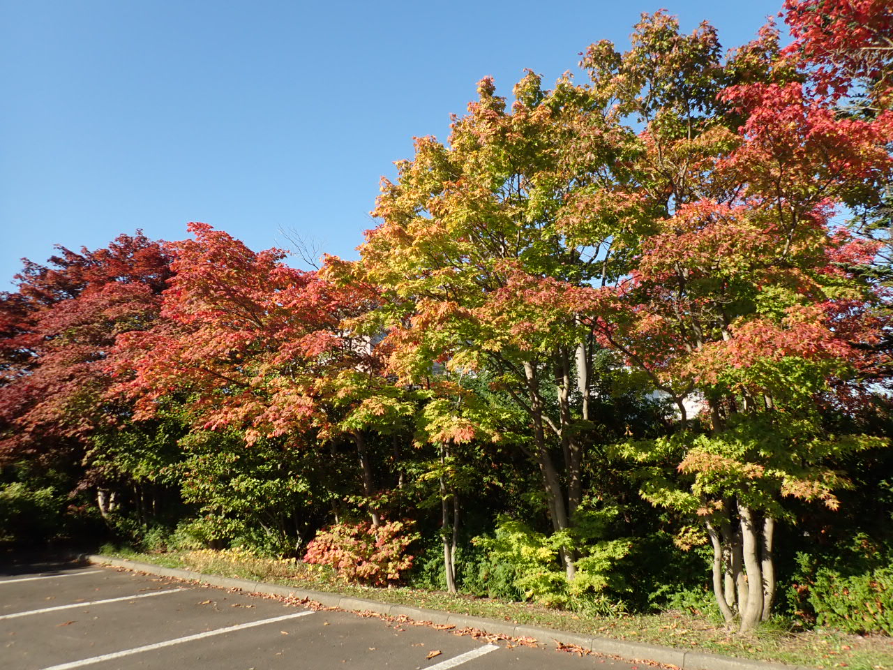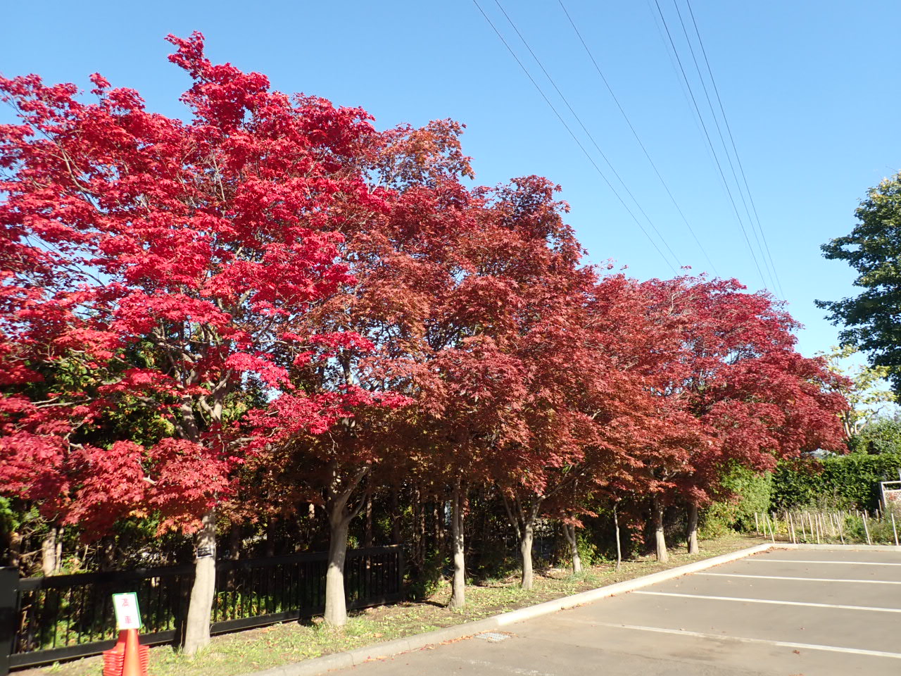 駐車場両脇のモミジ類も鮮やかな良い色に紅葉しています。