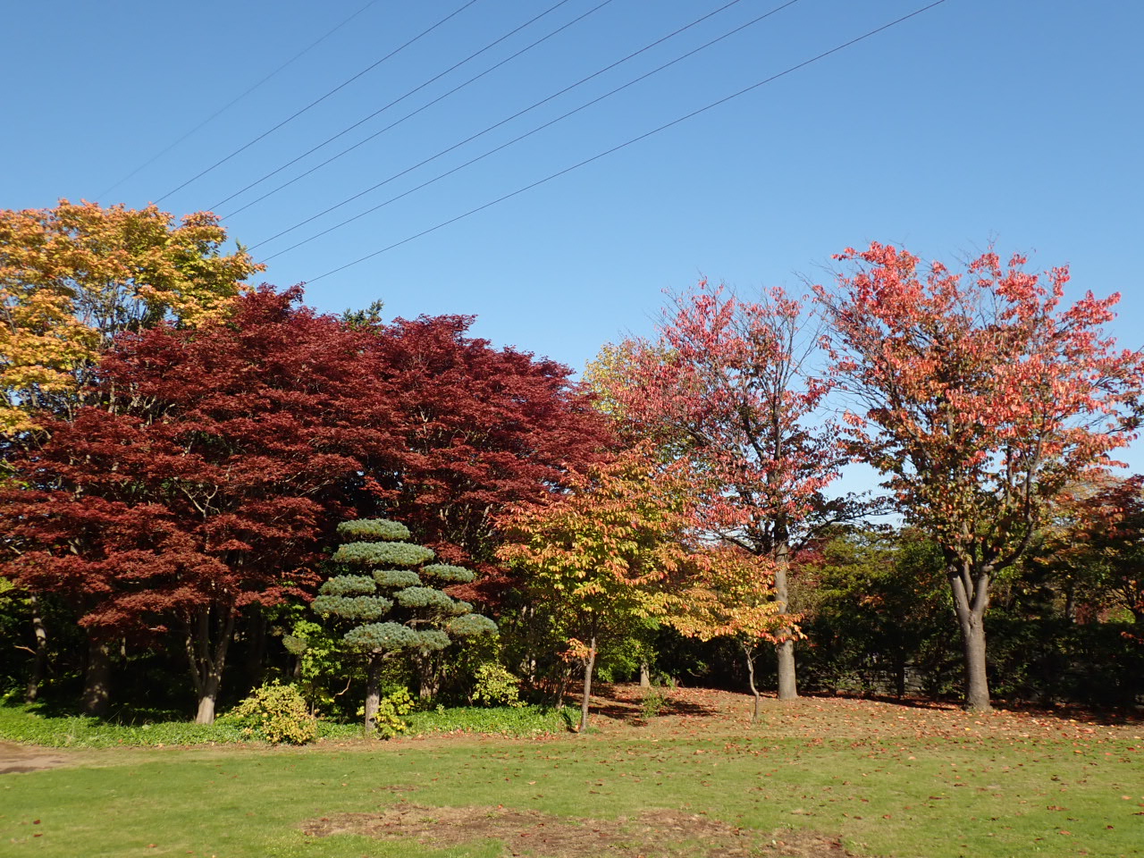 青空に紅葉した樹木が映えて気持ちが良いですよ。