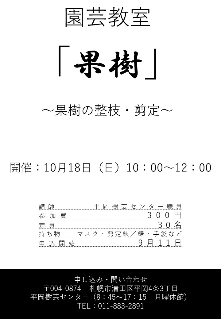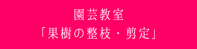 今回の園芸教室は、実なりが立派だと嬉しい果樹の剪定方法について学びましょう。