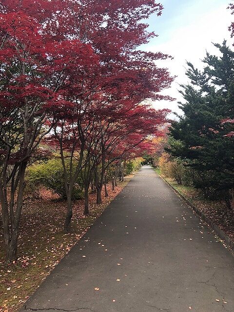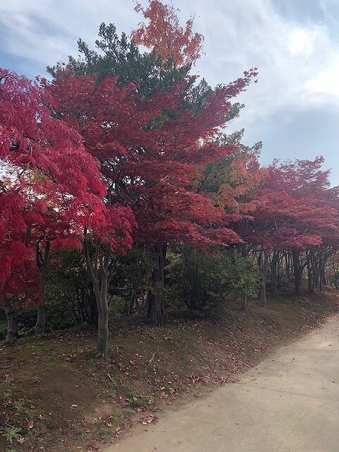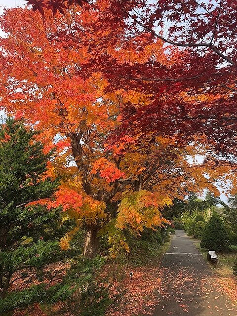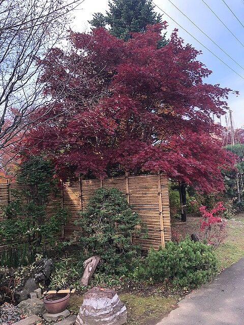 ノムラモミジも赤く色づいて、メインの紅葉並木は大分赤みが増してきています。