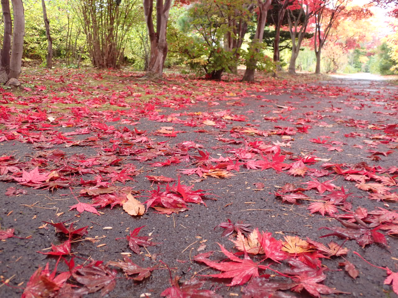 場所によって鮮やかな落ち葉が舞い落ちている所もあり、