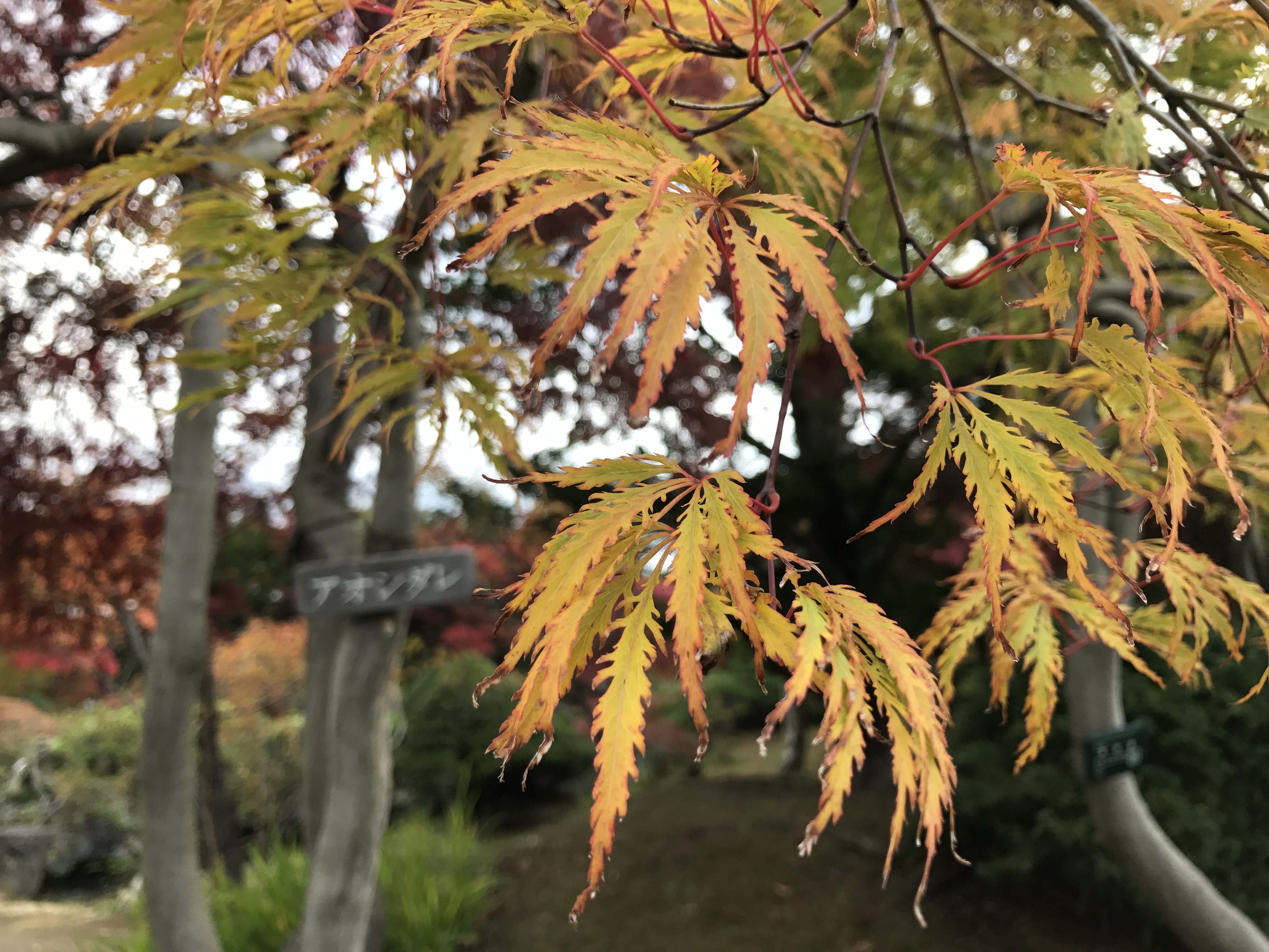 駐車場から園内に入り、一番左の園路を進むと左手に見えてくるヤマモミジ。