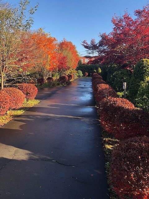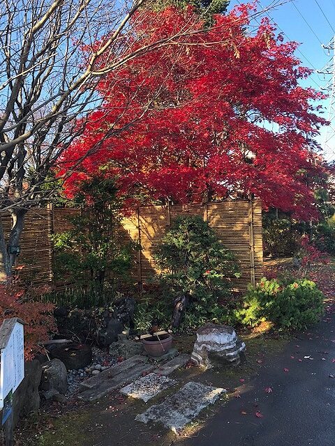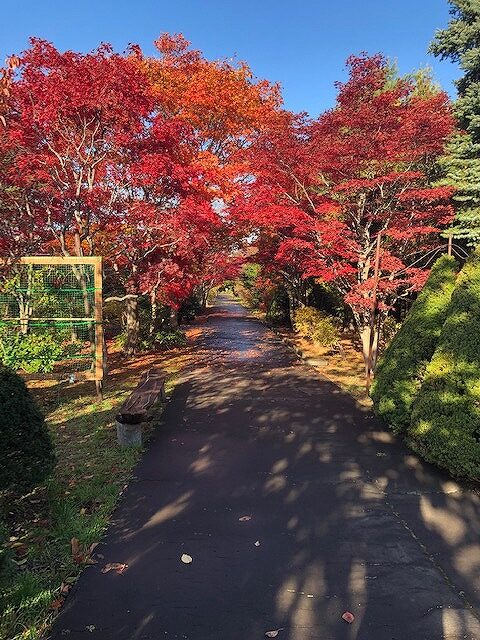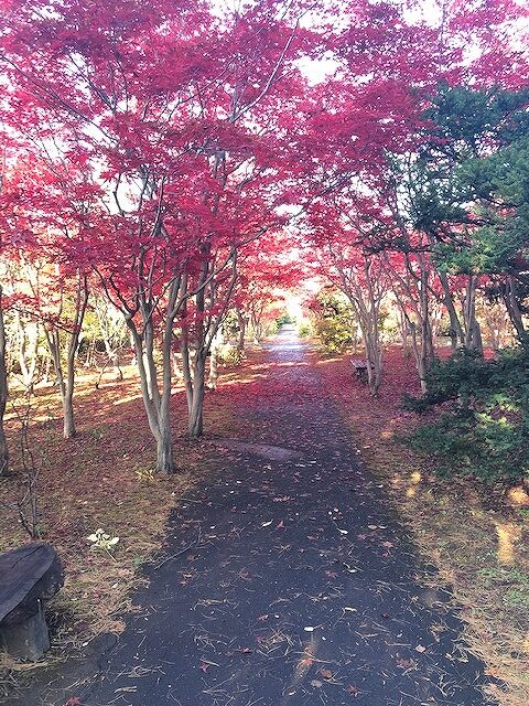 ノムラモミジのトンネルは、赤く色づき見頃を迎えています。
