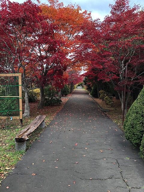 ノムラモミジのトンネルは、赤く色付き見頃を迎えています。