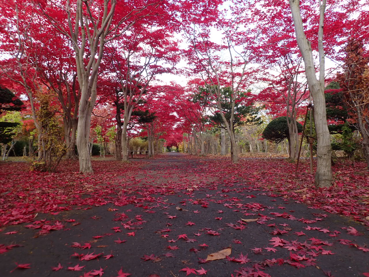 まだ絨毯とまではいきませんが園路を紅く色付け、今だけの景色を楽しむことが出来ます。